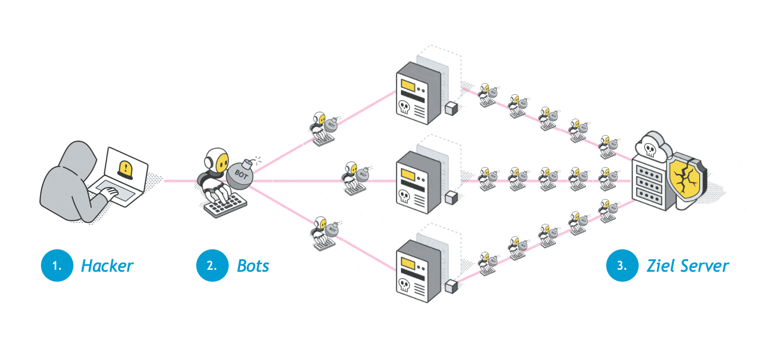 So läuft ein typischer D(D)oS-Angriff in 3 Schritten ab: