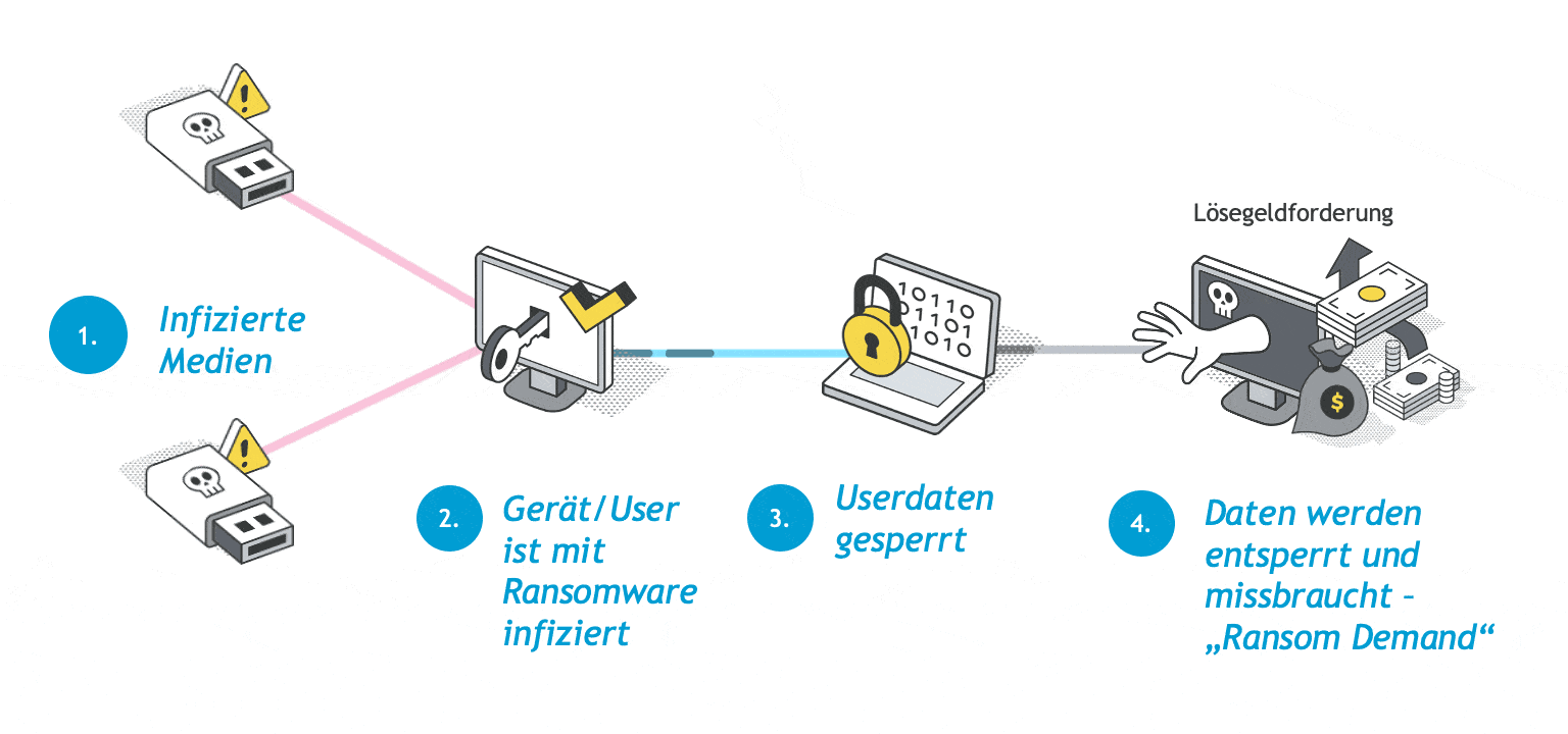 So läuft ein typischer Ransomware-Angriff in 4 Schritten ab: